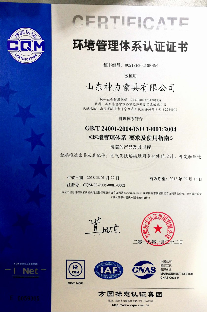 ISO14001環(huán)境管理體系證書