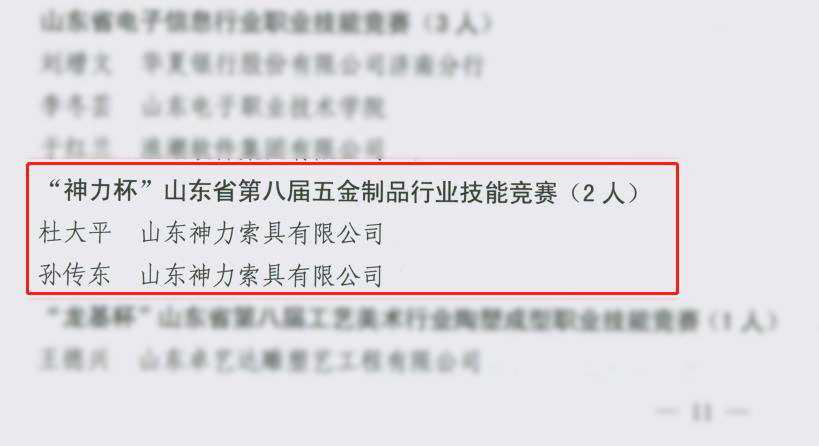 去年10月,杜大平同志、孫傳東同志參加了由省人社廳、省輕工紡織工會(huì)委員會(huì)、省輕工集體企業(yè)聯(lián)社主辦,省五金與衡器行業(yè)協(xié)會(huì)承辦,山東神力索具有限公司協(xié)辦的“神力杯”山東省第八屆五金制品行業(yè)技能大賽決賽。經(jīng)過激烈比拼,在眾多選手中脫穎而出,充分展現(xiàn)了我公司職工的技能風(fēng)采,為公司爭得了榮譽(yù)。